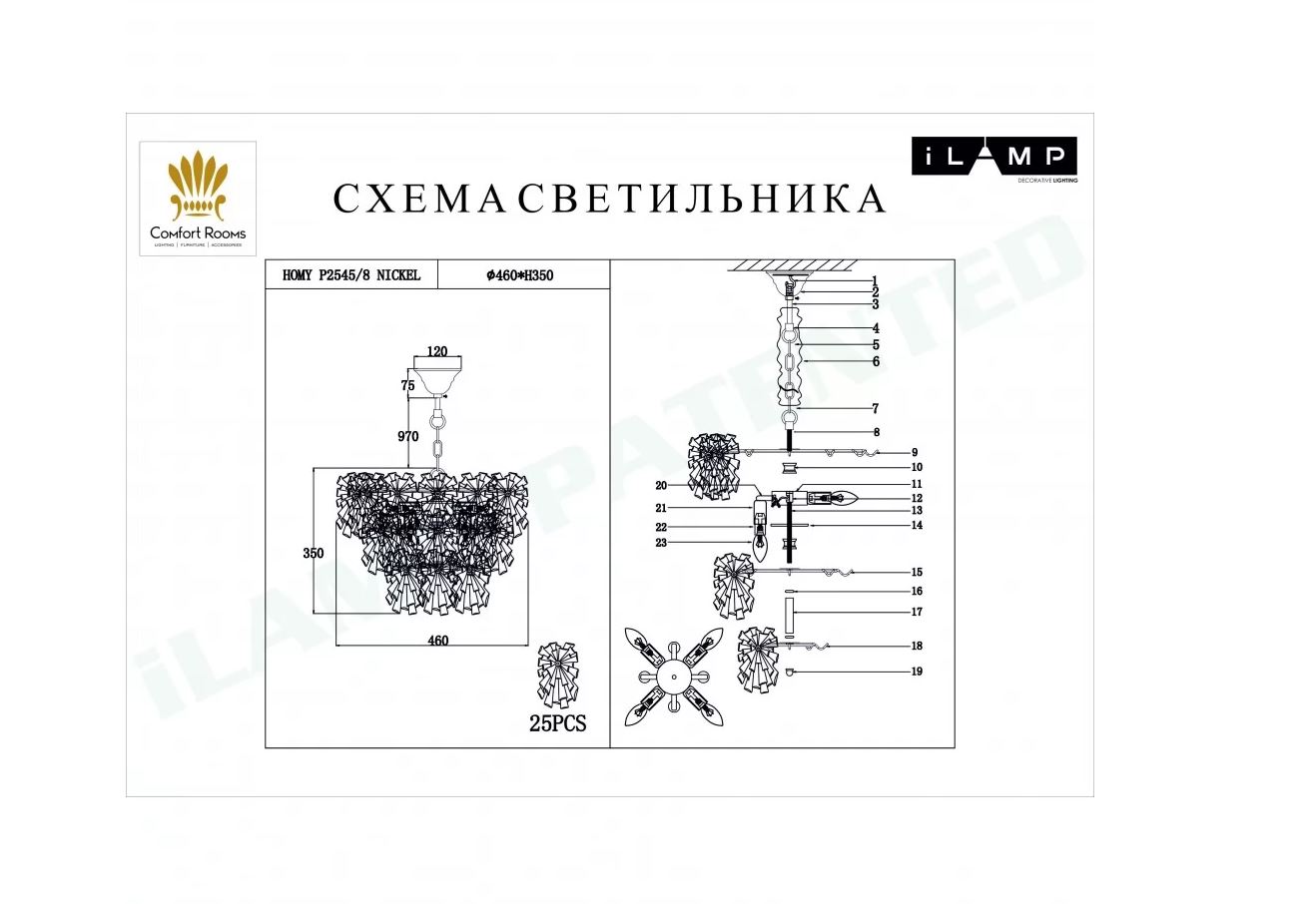 Подвесная люстра каскадная Homy P2545-8 NIC от российского бренда iLamp исполнена в цвете никель из металла и украшена декором из стекла. Модель имеет плафон из стекла и подходит для размещения на потолке в гостиной, спальне, кухне, кабинете в стиле модерн. Лампочки с цоколем 8xE14 имеют мощность 320W и освещают площадь до 16 кв. м. Напряжение питания 220V. Дополнительные опции: регулировка по высоте, возможность подключения диммера. Монтаж производится на металлический крюк. Диаметр — 460 мм. Заказывайте iLamp Homy P2545-8 NIC онлайн по низкой цене с гибкими условиями доставки на Fedomo.ru!