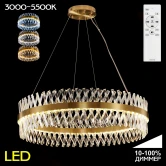 Корпус светильника металлический, в форме кольца, цвет бронза. Хрустальные элементы кристально прозрачные, великолепно рассеивают свет. С помощью пульта ДУ можно включать и выключать светильник, изменять яркость 10-100%, цветовую температуру от 3000К до 5500К, с возможностью настроить любые оттенки теплого, нейтрального или холодного света. Пульт ДУ в комплекте, тип батареек ААА (в комплект не входят).