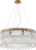 Подвесная люстра из серии Splendy выполнена из металической арматуры , гальванизированной в цвет бронзы и декорирована узкими прямоугольными подвесками из хрусталя высшего качества.