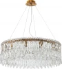 Подвесная люстра из серии Splendy выполнена из металической арматуры , гальванизированной в цвет бронзы и декорирована узкими прямоугольными подвесками из хрусталя высшего качества.