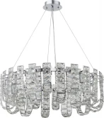 Подвесная люстра из серии UMIKO выполнена из металлической арматуры гальванизированной в цвет хрома и декорирована оригинальными элементами из хрусталя высокого качества. Хрусталь квадратной формы собран в стильные подвески овальной формы.