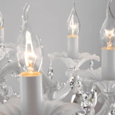 Подвесная люстра Eurosvet Veletta - это квинтэссенция элегантности и роскоши для вашего дома. Утонченный дизайн с великолепным прозрачным хрустальным декором Strotskis создает неповторимую игру световых бликов, наполняя интерьер атмосферой торжественности и уюта. Люстра гармонично сочетает в себе благородный металлический каркас с матовым белым покрытием и изящные светильники-свечи, выполненные в классическом стиле.
