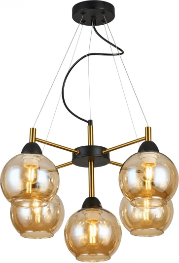 Подвесная люстра MD.9056-5-P-BK+COP от немецкого бренда Imex изготовлена из металла в янтарном цвете. Рассчитана на лампочки с цоколем 5xE27, мощность 300 Вт. Стиль – модерн. Модель имеет 5 плафонов из стекла, подходит для установки на потолке в гостиной, в кафе, в спальне, на кухне, над обеденным столом. Питание от сети 220 В. Способ крепления – монтажная пластина. Габариты: высота 1200 мм, диаметр 570 мм. Дополнительные функции: регулировка по высоте. Заказывайте Imex MD.9056-5-P-BK+COP онлайн по низкой цене с гибкими условиями доставки на Fedomo.ru!