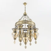 Восточная каскадная люстра Citilux Каир CL419263 с семью подвесными плафонами. Каркас металлический, цвет бронза. Плафоны в форме шара, изготовлены из прозрачного стекла медового оттенка, украшены декоративными, ажурными элементами. В изделии используются лампы с цоколем Е27, максимальной мощностью для ламп накаливания 75Вт. Светодиодные лампы можно устанавливать более яркие. Модель подходит для всех типов потолков, в том числе натяжных. Тип крепления – крючок.
