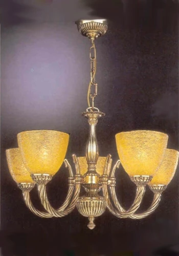Подвесная люстра Reccagni Angelo 4701 L 4701/5 от итальянского производителя Reccagni Angelo исполнена в желтом цвете из металла. Модель имеет 5 плафонов из стекла и подходит для размещения на потолке в гостиной, спальне, кабинете в стиле классический, ампир. Лампочки с цоколем 5xE27 оснащены мощностью 60W и освещают площадь до 15 кв. м. Питание производится от сети 220V. Дополнительные опции: возможность подключения диммера. Монтаж производится на металлический крюк. Габариты: высота — 420 мм, диаметр — 600 мм. Заказывайте Reccagni Angelo L 4701/5 онлайн по низкой цене с гибкими условиями доставки на Fedomo.ru!