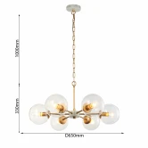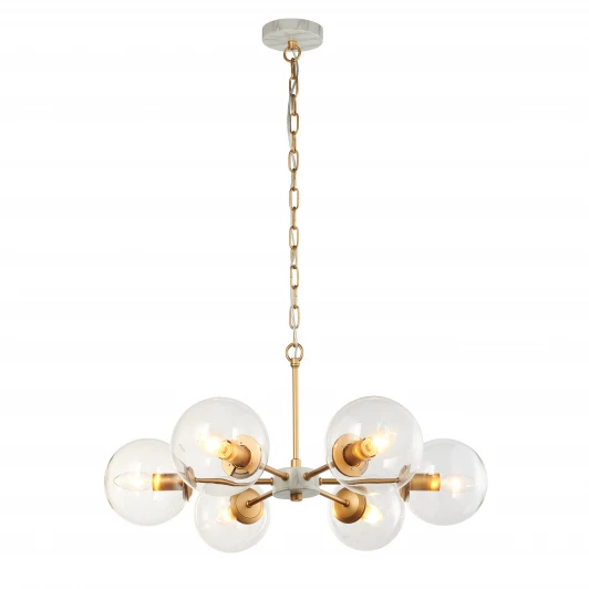 Каркас золотого цвета и цвета мрамора, плафоны из прозрачного стекла
