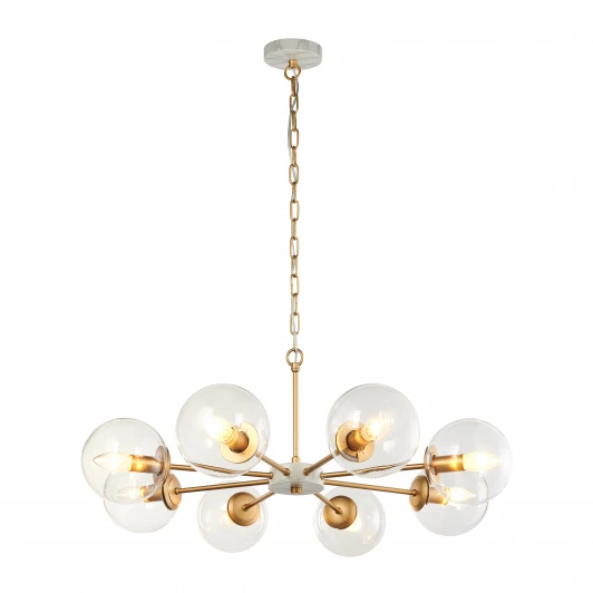 Каркас золотого цвета и цвета мрамора, плафоны из прозрачного стекла