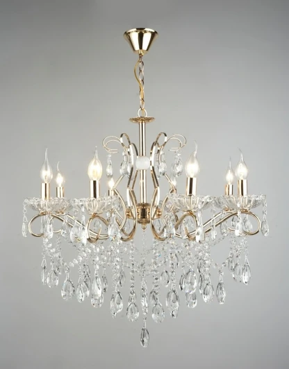 Подвесная люстра PL1N 000029174 от российского бренда Мелодия Света в виде подсвечника со свечами, co стеклянными подвесками изготовлена из металла, стекла в золотом цвете. Рассчитана на лампочки с цоколем 8xE14, мощность 320 Вт. Стиль – барокко. Подходит для установки на потолке в гостиной, в кафе, в холле, в спальне, на кухне. Освещаемая площадь до 16 кв. м. Питание от сети 220 В. Степень защиты от влаги и пыли IP20. Способ крепления – металлический крюк. Габариты: длина 720 мм, ширина 720 мм, высота 920 мм, диаметр 720 мм. Дополнительные функции: регулировка по высоте. Заказывайте Мелодия Света 000029174 онлайн по низкой цене с гибкими условиями доставки на Fedomo.ru!