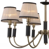 МЭНДИ. Идеальным, лаконичным сочетанием линий, фактур и материалов отличаются модели серии "МЭНДИ". Плавные линии рожков цвета античной бронзы с рифлёными черными вставками устремлены в верх. Дуги увенчаны скромными абажурами из меланжевой фактурной ткани