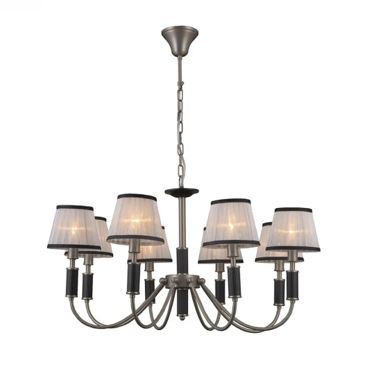 МЭНДИ. Идеальным, лаконичным сочетанием линий, фактур и материалов отличаются модели серии "МЭНДИ". Плавные линии рожков цвета античной бронзы с рифлёными черными вставками устремлены в верх. Дуги увенчаны скромными абажурами из меланжевой фактурной ткани