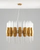 Роскошная подвесная люстра Strict. Множество плафонов из прозрачного стекла с рельефной поверхностью заполняют пространство ярким рассеянным освещением. В качестве источника света подойдут лампы Е14. Металлический каркас латунного цвета прекрасно сочетается с плафонами и добавляет в образ помпезный стиль. Такая люстра обязательно привлечет внимание и станет главным акцентом в интерьере зала, гостиной или в обеденной зоне. Высоту люстры можно отрегулировать при монтаже с помощью подвесных тросов.