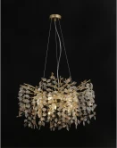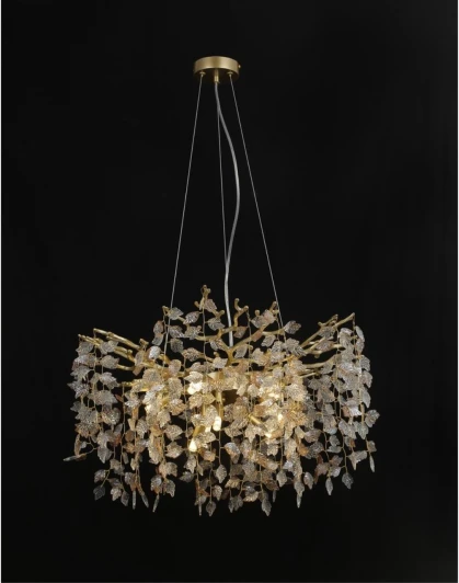 с листьями из хрусталя. Особенно эффектно светильники смотрятся при включенном свете: хрустальные листики преломляют свет, создавая искрометные блики.