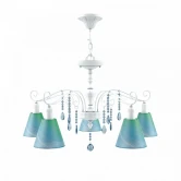 Люстра подвесная E4-05-WM-LMP-O-18-CRL-E4-05-GB-DN из серии Provence 20 от компании Lamp4You устанавливается на металлический крюк. Люстра прекрасно подойдет в качестве источника основного света для гостиной, спальни, кухни, оформленных в стиле прованс. Основной цвет модели - голубой, материал арматуры - металл. Люстра имеет 5 абажуров со свечением вниз, материал изготовления - ткань, ПВХ. Модель оснащена цоколем E14 (5xE14), имеет 5 лампочек с общей мощностью 200W и напряжением 220V. Светильник поддерживает подключение диммера. Габариты: высота - 430 мм, диаметр - 770 мм, длина подвеса - 550 мм. Лампочки в комплект не входят. Лучшая цена и условия доставки на Lamp4You E4-05-WM-LMP-O-18-CRL-E4-05-GB-DN в интернет-магазине Fedomo.ru.