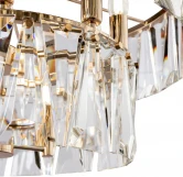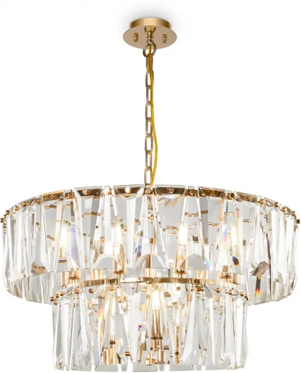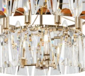 Материал арматуры – металл, оттенки – хром и золото. Декор – массивные крис таллы сложной огранки. Высота подвесных моделей регулируется длиной цепи. Источник света - лампа с цоколем Е14.