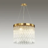 Подвесная люстра Odeon Light Refano 4848/5 произведена итальянским брендом Odeon Light, декорирована стеклянными и хрустальными элементами и исполнена в цвете золота из металла. Модель подходит для размещения на потолке гостиной, спальни в стиле арт-деко. Лампочки с цоколем 5xE14 обладают общей мощностью 200 Вт. Модель регулируется по высоте, установка производится на монтажную пластину. Допускается подключение диммера. Длина - 450 мм, ширина - 450 мм, высота - мм, диаметр - 450 мм. Заказывайте Odeon Light 4848/5 онлайн по низкой цене с гибкими условиями доставки на Fedomo.ru!