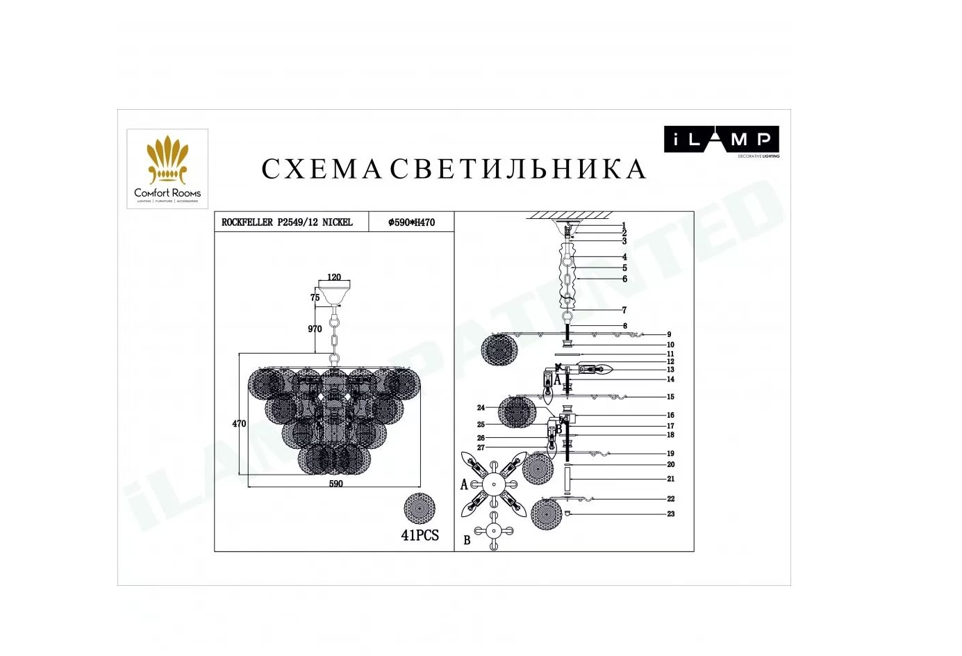 Подвесная люстра каскадная Rockfeller P2549-12 NIC от российского бренда iLamp исполнена в цвете никель из металла. Модель имеет плафон из стекла и подходит для размещения на потолке в гостиной, спальне, кухне, кабинете в стиле модерн. Лампочки с цоколем 12xE14 имеют мощность 480W и освещают площадь до 24 кв. м. Напряжение питания 220V. Дополнительные опции: регулировка по высоте, возможность подключения диммера. Монтаж производится на металлический крюк. Диаметр — 590 мм. Заказывайте iLamp Rockfeller P2549-12 NIC онлайн по низкой цене с гибкими условиями доставки на Fedomo.ru!