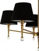 Элегантность и комфорт американской классики запечатлены в дизайне серии Rosemary. Сдержанный и визуально легкий силуэт металлической арматуры подчеркнут благородным оттенком латуни. Традиционную для классического стиля симметрию разбавляют декоративные капли из прозрачного хрусталя. Преломляя лучи света, они дарят радужные блики и освежают композицию. Абажуры из красивой текстурированной ткани завершают лаконичный и изящный образ. Они представлены в двух оттенках: белом и черном. Широкий ассортимент серии включает люстры на 5, 7 и 12 ламп, а также настольный светильник, торшер и бра. Это готовый комплексный ансамбль для общей и зональной подсветки гостиных и спален, выполненных в лучших традициях современной классики.