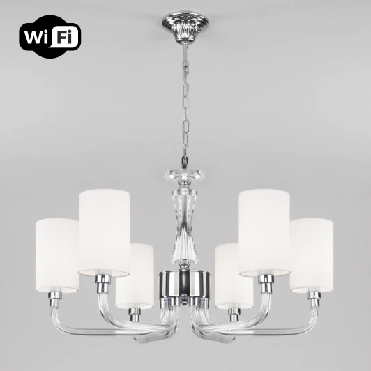 Умная подвесная люстра с Wi-Fi Eurosvet Catania 60120/6 хром Smart (60112/6) от производителя Eurosvet исполнена в белом цвете из металла. Модель имеет 6 абажуров из ткани и подходит для размещения на потолке в интерьере гостиной, спальни, кухни, над обеденным столом, кабинета в классическом стиле. Лампочки с цоколем 6xE14 освещают пространство площадью до 12 кв. м. Общая мощность — 240W, питание от 220V. Дополнительные опции: регулировка высоты, синхронизация с системой «умный дом», управление с помощью голосового помощника, дистанционное управление от многофункционального пульта, а также из приложения смартфона Minimir Home (iOS, Android), программирование световых сценариев. Установка производится на металлический крюк. Габариты: длина — 700 мм, ширина — 700 мм. Заказывайте Eurosvet 60120/6 хром Smart (60112/6) онлайн по низкой цене с гибкими условиями доставки на Fedomo.ru!