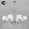 Умная подвесная люстра с Wi-Fi Eurosvet Madera 10127/8 хром/прозрачный хрусталь Strotskis Smart (10093/8) от производителя Eurosvet исполнена в белом цвете из металла. Модель имеет 8 абажуров из ткани, декорирована элементами из хрусталя и подходит для размещения на потолке в интерьере гостиной, спальни, кухни, над обеденным столом, кабинета в классическом стиле. Лампочки с цоколем 8xE14 освещают пространство площадью до 16 кв. м. Общая мощность — 320W, питание от 220V. Дополнительные опции: регулировка высоты, синхронизация с системой «умный дом», управление с помощью голосового помощника, дистанционное управление от многофункционального пульта, а также из приложения смартфона Minimir Home (iOS, Android), программирование световых сценариев. Установка производится на металлический крюк. Габариты: длина — 750 мм, ширина — 750 мм. Заказывайте Eurosvet 10127/8 хром/прозрачный хрусталь Strotskis Smart (10093/8) онлайн по низкой цене с гибкими условиями доставки на Fedomo.ru!