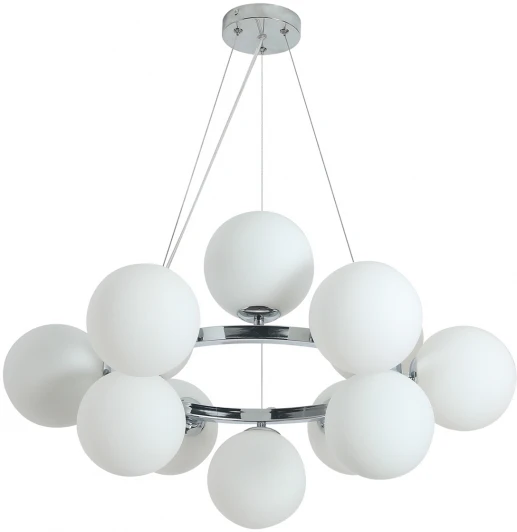Подвесная люстра Сида 07508-12A,02 от китайского бренда Kink Light исполнена в цвете хром из металла. Модель имеет 12 плафонов из стекла и подходит для размещения на потолке в гостиной, кухне, кабинете, офисе в стиле модерн. Лампочки с цоколем 12xE14 имеют мощность 480W и освещают площадь до 24 кв. м. Индекс цветопередачи лампочки >80Ra, световой поток 4320 lm. Напряжение питания 220V. Дополнительные опции: возможность подключения диммера. Монтаж производится на пластину. Габариты: высота — 1200 мм, диаметр — 730 мм. Заказывайте Kink Light Сида 07508-12A,02 онлайн по низкой цене с гибкими условиями доставки на Fedomo.ru!