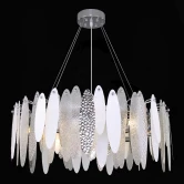 Изысканный и легкий образ светильников LASTRA создается многослойным плафоном из фактурных лепестков из прозрачного и матового стекла. Подвесные люстры двух диаметров имеют 8 и 10 ламп с цоколем Е14, что обеспечивает эффективное освещение пространства. Дополняет коллекцию бра на 2 лампы.