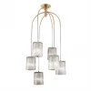 Серия Starfall наполнена романтикой городского дождя, которая находит отражение в её деталях. Стеклянные плафоны с орнаментом, напоминающим движение воды, закреплены на рожках золотого цвета в форме арок. Потолочные светильники с 6-ю, 4-я или 1-м плафоном регулируются по высоте благодаря изменению длины шнура. Светильники подойдут для освещения кафе и ресторанов, ими можно зонировать пространство, выделяя светом предметы интерьера.