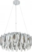 Люстра подвесная из коллекции New Ton выполнена из металла, гальванизированного в цвет хрома, и декорирована прозрачным и дымчатым хрусталем вытянутой формы высшей категории.