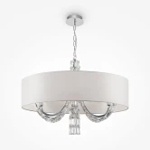 Подвески из массивных граненых кристаллов на рожках и в основании делают серию Talento непохожей на других. Арматура изготовлена из металла с хромированным покрытием. Абажуры сделаны из белой ткани, нанесенной на ПВХ. Высота люстр регулируется длиной цепи. Широкая линейка светильников, представленных в серии, включает люстру на 7 и 5 плафонов, несколько бра и настольных ламп, торшер— это идеально сформированный, выдержанный комплекс для подсветки интерьеров в стиле неоклассика, ар-деко, модерн.