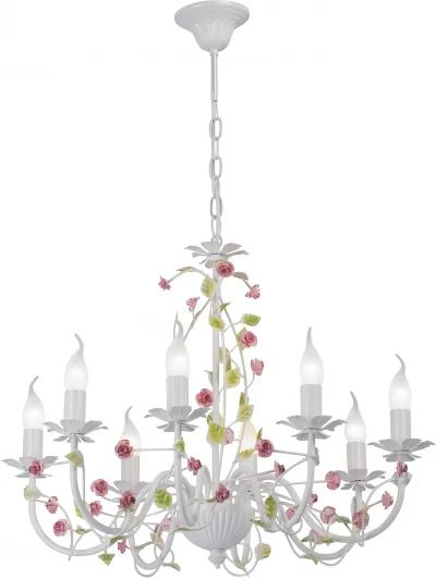 Подвесная люстра V1796-0/8 от российского бренда Vitaluce в виде подсвечника со свечами и цветами изготовлена из металла в белом цвете. Стиль – классический, флористика. Подходит для установки на потолке в гостиной, кафе, холле, спальне, на кухне, рассчитана на лампочки с цоколем 8xE14 мощностью 320 Вт. Освещаемая площадь до 24 кв. м. Питание от сети 220 В. Способ крепления – металлический крюк. Габариты: длина 680 мм, ширина 680 мм, высота 850 мм. Дополнительные функции: есть возможность регулировки по высоте, регулировка по высоте. Заказывайте Vitaluce V1796-0/8 онлайн по низкой цене с гибкими условиями доставки на Fedomo.ru!