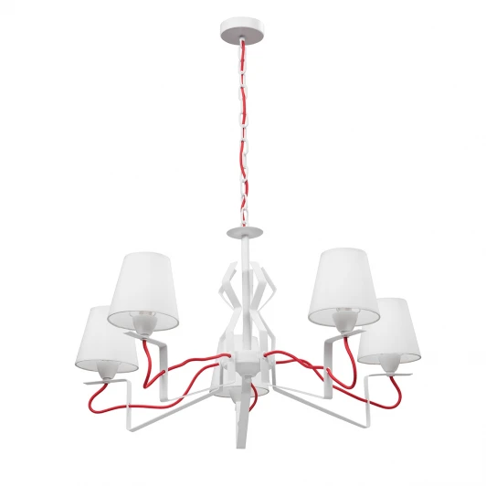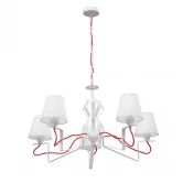 Люстра подвесная V4562-0/5 от компании Vitaluce устанавливается на монтажную пластину. Люстра украшена красным проводом и прекрасно подойдет в качестве источника основного света для гостиной, спальни, кухни, оформленных в стиле арт-деко. Основной цвет модели - белый, материал арматуры - металл. Люстра имеет 5 абажуров со свечением вверх, материал изготовления - ткань. Модель оснащена цоколем E14 (5xE14), имеет 5 лампочек с общей мощностью 200W и напряжением 220V. Светильник поддерживает подключение диммера. Габариты: высота - 890 мм, диаметр - 770 мм. Лампочки в комплект не входят. Лучшая цена и условия доставки на Vitaluce V4562-0/5 в интернет-магазине Fedomo.ru.