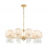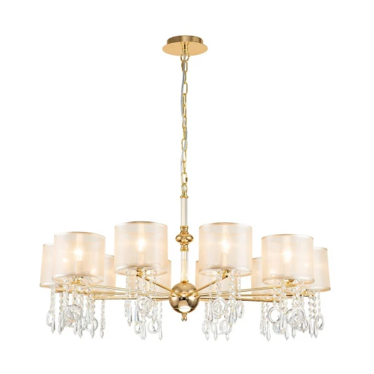 Подвесная люстра Favourite Ventus 2891-10P от немецкого производителя Favourite исполнена в золотистом цвете из металла и украшена декором из хрусталя. Модель имеет 10 абажуров из ткани и подходит для размещения на потолке в гостиной, спальне, кухне, над обеденным столом, кабинете в классическом стиле. Лампочки с цоколем 10xE14 оснащены мощностью 40W и освещают площадь до 20 кв. м. Питание производится от сети 220V. Дополнительные опции: регулировка по высоте, возможность подключения диммера. Монтаж производится на пластину. Габариты: диаметр — 920 мм. Заказывайте Favourite 2891-10P онлайн по низкой цене с гибкими условиями доставки на Fedomo.ru!