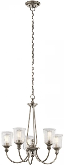 Коллекция WAVERLY напоминает классический антикварный свет. Светильники одинаково хорошо смотрятся в традиционных, смешанных и даже современных интерьерах. Прозрачное фактурное стекло и покрытие в отделке «классическое олово» подчёркивает винтажный дух. Люстра поставляется с цепью 1915 мм.