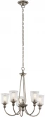 Подвесная люстра Waverly KL-WAVERLY5-CLP от китайского бренда Kichler изготовлена из металла в цвете олово. Рассчитана на лампочки с цоколем 5xE27, мощность 300 Вт. Стиль – классический. Модель имеет 5 плафонов из стекла, подходит для установки на потолке в гостиной, в прихожей и коридоре, в спальне, на кухне, над обеденным столом, в зале. Освещаемая площадь до 15 кв. м. Питание от сети 220 В. Габариты: длина 711 мм, ширина 660 мм, высота 2695 мм. Дополнительные функции: есть возможность регулировки по высоте. Заказывайте Kichler KL-WAVERLY5-CLP онлайн по низкой цене с гибкими условиями доставки на Fedomo.ru!