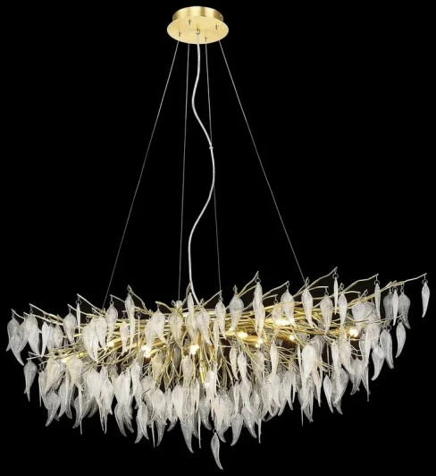 Подвесная люстра Daniela WE182.15.423 от немецкого бренда Wertmark с листьями, в виде ветки изготовлена из металла прозрачного цвета. Рассчитана на лампочки с цоколем 15xG9, мощность 600 Вт. Стиль – арт-деко. Модель имеет 1 плафон из стекла, подходит для установки на потолке в гостиной, в кафе, на кухне, в магазине, над обеденным столом, в спальне. Освещаемая площадь до 30 кв. м. Питание от сети 220 В. Степень защиты от влаги и пыли IP20. Способ крепления – монтажная пластина. Габариты: длина 1200 мм, ширина 500 мм, высота 380 мм. Дополнительные функции: регулировка по высоте. Заказывайте Wertmark WE182.15.423 онлайн по низкой цене с гибкими условиями доставки на Fedomo.ru!