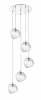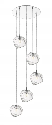 Подвес на круглом основании из металла цвета хром, с прозрачными проводами и пятью стеклянными плафонами напоминающими небольшие прозрачные глыбы льда. 5хЕ27