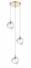 Подвес на круглом основании из металла цвета матовое золото, с прозрачными проводами и тремя стеклянными плафонами напоминающими небольшие прозрачные глыбы льда. 3хЕ27