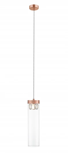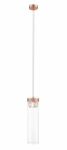 Подвес из металла цвета античная латунь, прозрачным проводом и узкоцилиндрическим плафоном из прозрачного стекла с хрустальными элементами внутри. 1хG9