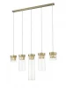Подвесной светильник 39241 39241-5PL от российского производителя Simple Story исполнен в цвете латунь из металла. Модель имеет 5 плафонов из стекла и подходит для размещения на потолке в гостиной, кафе, кухне, над кухонным островом, офисе в стиле модерн. Лампочки с цоколем 5xG9 оснащены мощностью 140W и освещают площадь до 10 кв. м. Питание от сети 220V. Дополнительные опции: возможность подключения диммера. Монтаж производится на пластину. Габариты: длина — 860 мм, ширина — 110 мм, высота — 1620 мм. Заказывайте Simple Story 39241 39241-5PL онлайн по низкой цене с гибкими условиями доставки на Fedomo.ru!