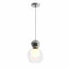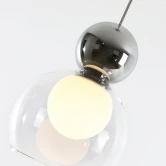 Подвес состоит из двух выдувных стёкол - внешний плафон прозрачный. Внешнее стекло в верхней части покрыто гальваническим напылением цвета хром. Внутренний плафон - выдувной шарик белого матового цвета
