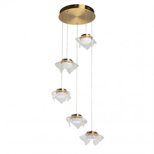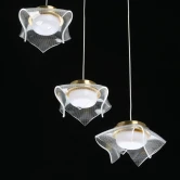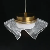 Металлическое основание одиночного подвеса гальванизировано в цвет бронзы. Плафон выполнен из прозрачного акрила с точечным рисунком. Светодиодный источник света закрыт белым матовым акрилом.