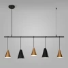 Подвесной светильник 50088/5 черный/золото входит в серию Eurosvet Castle от китайского бренда Eurosvet. Модель выполнена из металла в черном цвете и подходит для размещения на потолке в гостиной, кафе, кухне, над кухонным островом, офисе в современном стиле. Светильник имеет 5 абажуров. Материал изготовления - металл. Лампочки 5xE14 обладают мощностью 60 Вт. Питание от сети 220V. Приблизительная площадь освещения составляет 20 кв. м. Дополнительные опции: возможность подключения диммера. Установка производится на монтажную пластину. Габариты: длина - 1200 мм, ширина - 140 мм. Заказывайте Eurosvet 50088/5 черный/золото онлайн по низкой цене с гибкими условиями доставки на Fedomo.ru!
