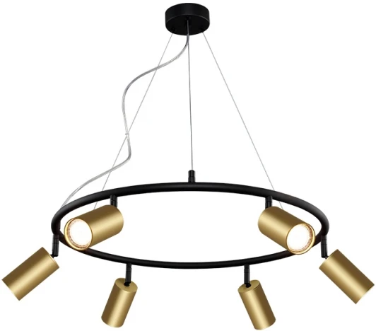 Подвесной светильник CLT 015 CLT 015C6 D600 BL-GO от испанского бренда Crystal Lux в форме кольца изготовлен из алюминия в золотом цвете. Рассчитан на лампочки с цоколем 6xGU10, мощность 300 Вт. Стиль – современный, техно. Модель имеет 6 плафонов из алюминия, подходит для установки на потолке в гостиной, на кухне, над обеденным столом, в кабинете, в офисе. Питание от сети 220 В. Степень защиты от влаги и пыли IP20. Способ крепления – монтажная пластина. Габариты: высота 185 мм, диаметр 601 мм. Дополнительные функции: есть возможность регулировки по высоте, направление света регулируется, регулировка по высоте. Заказывайте Crystal Lux CLT 015C6 D600 BL-GO онлайн по низкой цене с гибкими условиями доставки на Fedomo.ru!