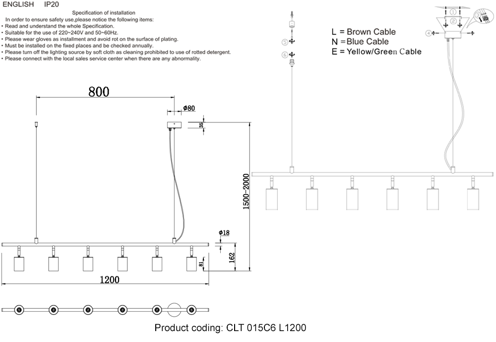 Подвесной светильник CLT 015 CLT 015C6 L1200 BL от испанского производителя Crystal Lux исполнен в черном цвете из металла. Модель имеет 6 плафонов из металла и подходит для размещения в гостиной, кухне, над обеденным столом, кабинете, над кухонным островом, офисе в современном стиле. Лампочки с цоколем 6xGU10 оснащены мощностью 300W и освещают площадь до 21 кв. м. Питание от сети 220V. Дополнительные опции: регулировка по высоте, возможность подключения диммера. Монтаж производится на пластину. Габариты: длина — 1200 мм, ширина — 56 мм, высота — 1500 мм. Заказывайте Crystal Lux CLT 015 CLT 015C6 L1200 BL онлайн по низкой цене с гибкими условиями доставки на Fedomo.ru!