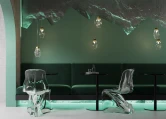 Литое стекло с объемными гранями многократно преломляет световые лучи, создавая праздничные блики. Арматура из металла, окрашенная в золотой цвет, поддерживает настроение модели. Широкий ассортимент серии представлен бра, одиночным подвесом, люстрами на 3 и 7 плафонов. Регулируя высоту проводов и длину штанги, вы сможете составлять уникальные инсталляции и адаптировать светильники под габариты помещения. Серия удачно дополнит как современные, так и классические интерьеры – от ар-деко до жизнерадостной эклектики. Цвет арматуры - Жемчужное золото