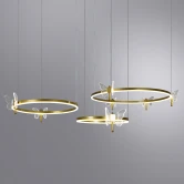 Подвесной светильник с пультом, светодиодный Arte Lamp Darcy A2187LM-3GO от итальянского бренда Arte Lamp с бабочками, в форме кольца изготовлен из металла прозрачного цвета. Рассчитан на лампочки с цоколем 1xLED, мощность 170 Вт. Стиль – модерн, современный. Модель имеет 3 рассеивателя из акрила, подходит для установки на потолке в гостиной, в кафе, в спальне, в магазине. Освещаемая площадь до 30 кв. м, цветовая температура 3000-6000 К, световой поток 9000 lm, срок службы составит не менее 20000 часов. Питание от сети 220 В. Степень защиты от влаги и пыли IP20. Способ крепления – монтажная пластина. Габариты: высота 1500 мм, диаметр 1560 мм. В комплект входят: лампочки, ПДУ. Дополнительные функции: управление с помощью пульта, есть возможность регулировки по высоте, регулировка по высоте, регулировка цветовой температуры. Заказывайте Arte Lamp A2187LM-3GO онлайн по низкой цене с гибкими условиями доставки на Fedomo.ru!