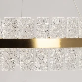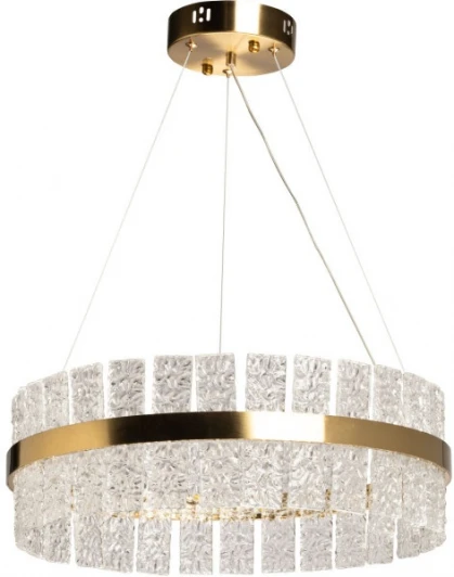 Подвесная люстра привлекает внимание необычным дизайном, добавляя элегантности интерьеру. Актуальный золотой цвет основания дополняет изысканный декор из фактурных стеклянных пластин. Фактура прозрачного вулканического стекла разбивает световой поток на множество ярких бликов, которые создают в комнате романтичную атмосферу. Многорежимность с изменением цветовой температуры от 3000К до 6500К является элементом светодизайна. Качественные светодиоды обеспечивают яркое освещение и долгий срок службы. Наличие ПДУ позволяет удобно устанавливать сценарий освещения. Возможность регулировать комфортную высоту. Встроенные светодиоды экономичны и безопасны. 3 режима - Светодиодные источники (Теплый свет), Светодиодные источники (Холодный свет),Совмещенный (Дневной свет)