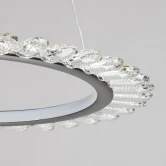 Металлическая потолочная чаша окрашена в черный цвет. Корпус плафона выполнен из сплава алюминия и окрашен в черный цвет. Светодиодные источники света закрыты белым силиконом. Люстра декорирована прозрачным акрилом.
