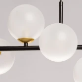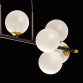 Металлическое основание окрашено в черный цвет. Отдельные элементы основания окрашены в цвет золота. Заменяемые источники света с цоколем G9 закрыты матовыми стеклянными плафонами.