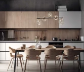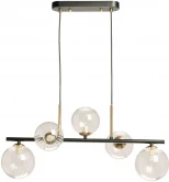 Металлическое основание подвесной люстры окрашено в черный цвет. Отдельные элементы основания гальванизированы в цвет латуни. Люстра декорирована плафонами из прозрачного стекла с линейной фактурой.