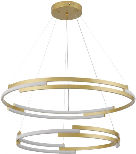 Подвесной светильник с пультом, светодиодный Ральф 675015202 от немецкого бренда DeMarkt в форме кольца изготовлен из металла в цвете латунь. Рассчитан на диодные источники света, мощность 120 Вт. Стиль – хай-тек. Модель имеет 2 рассеивателя, 2 яруса, подходит для установки на потолке в гостиной, в спальне, в кабинете, в офисе. Цвет свечения – дневной, холодный, теплый, цветовая температура 3000-6000 К, световой поток 10080 lm. Питание от сети 220 В. Степень защиты от влаги и пыли IP20. Способ крепления – монтажная пластина. Габариты: высота 1500 мм, диаметр 805 мм. В комплект входят: лампочки, ПДУ. Дополнительные функции: управление с помощью пульта, подходит для подключения к диммеру, есть возможность регулировки по высоте, регулировка по высоте, регулировка цветовой температуры. Заказывайте DeMarkt 675015202 онлайн по низкой цене с гибкими условиями доставки на Fedomo.ru!